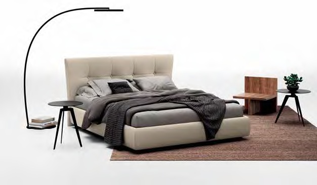 Хармонията в дизайна се ражда от умелия диалог между материалите – фино съчетание от топли дървесни текстури и деликатни матови повърхности. Ключов акцент в интериора е леглото Esedra с неговата мека, тапицирана табла, която внася усещане за уют и ненатрапчив лукс.